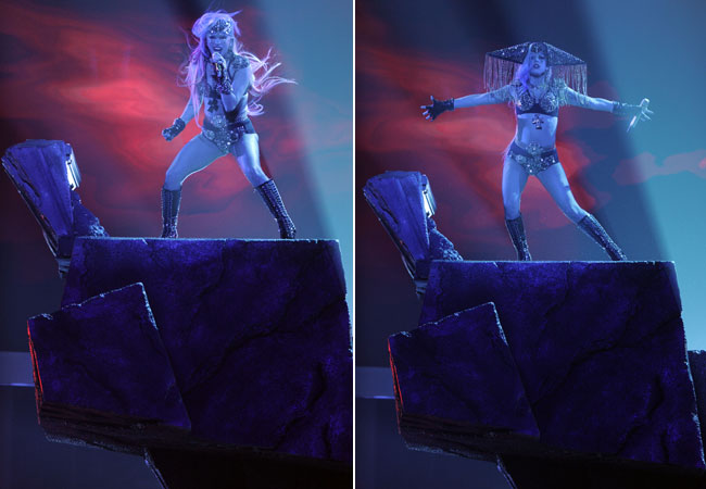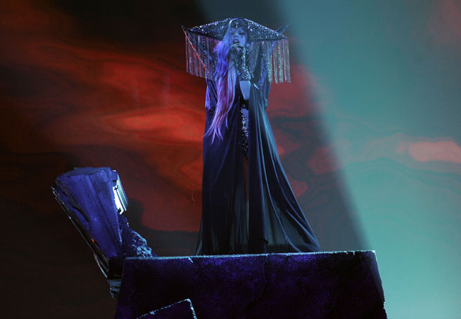 Ao lado de bailarino, cantora usou mais um de seus looks bizarros no palco da final do "American Idol.